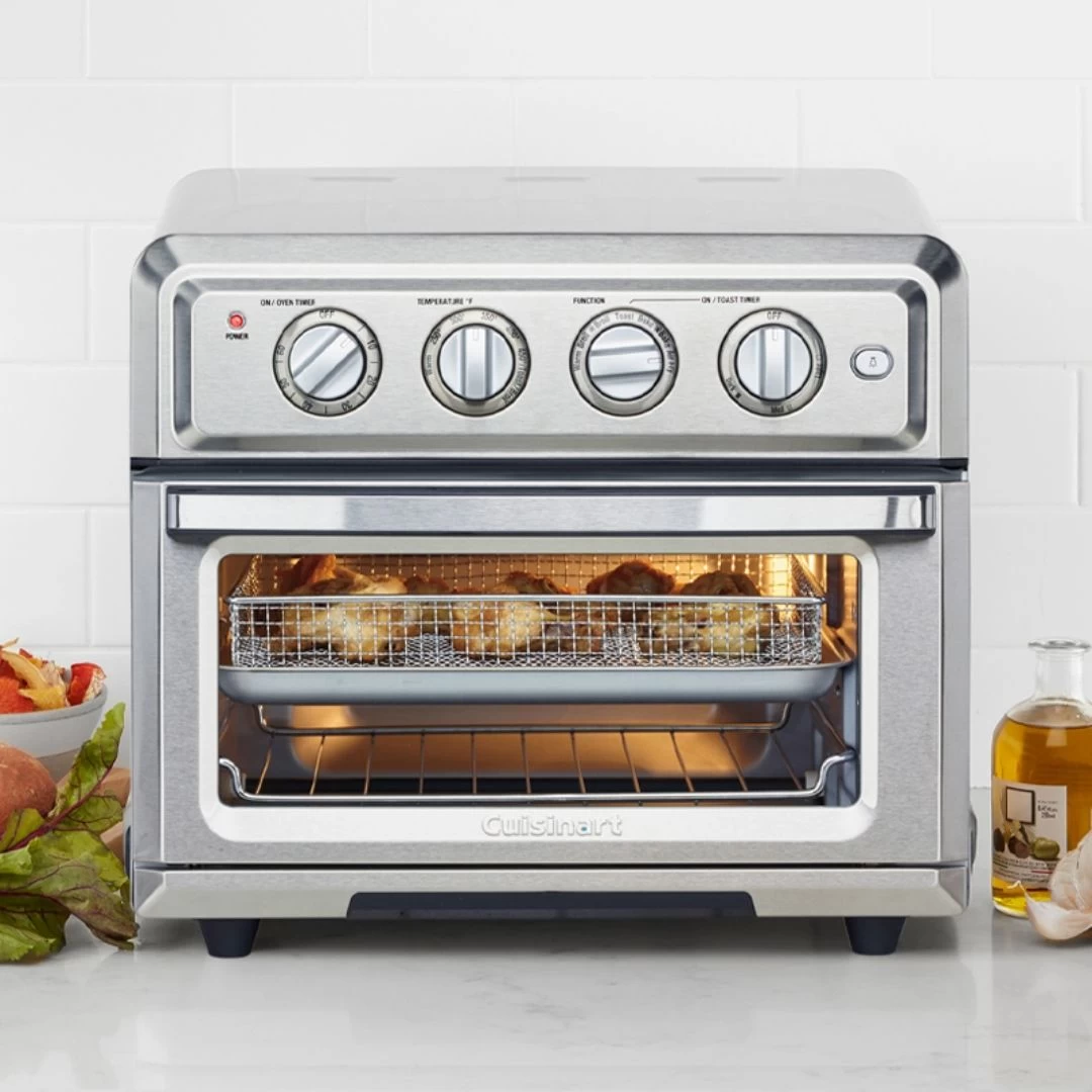 C’est un four grille-pain de taille standard avec friteuse intégrée. Cuisson au gril, grillage, cuisson au four, friture à air chaud… toutes les options sont possibles! L’air ultra chaud et puissant frit à la perfection crevettes, ailes de poulet, beignets, pommes de terre et autres, pratiquement sans huile. Un poulet de 4 lb, par exemple, ne nécessitera que 1 c. à thé d’huile! Et contrairement à la friteuse classique que l’on doit sortir de l’armoire et ranger après l’utilisation, celle-ci reste sur le comptoir puisque c’est aussi votre four grille-pain. Savourez le croustillant sans les calories et sans les dégâts graisseux, grâce au four à convection friteuse à air chaud de Cuisinart!