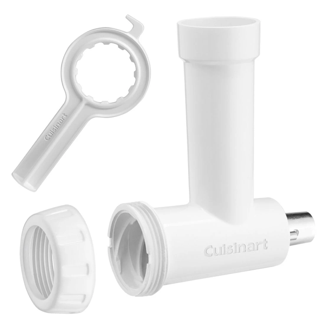 Cet accessoire polyvalent peut hacher de la viande, de la volaille, des noix et des légumes et peut également servir à préparer des saucisses et des saucissons. Toutes les pièces sont faciles à fixer, à enlever et à nettoyer.