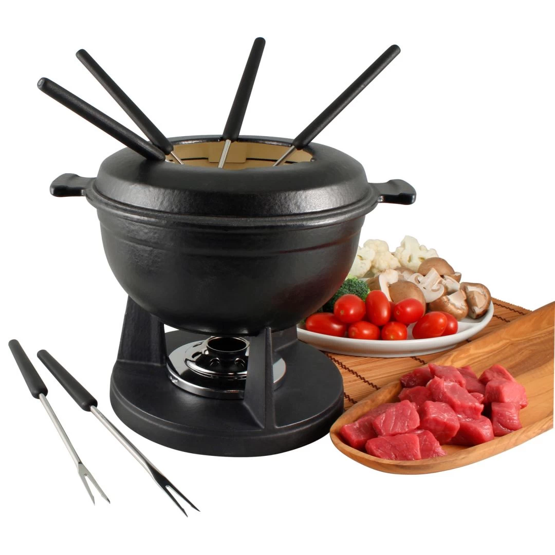 La fonte, très appréciée de ceux et celles qui font l’acquisition de récipients de cuisson conçus avec elle, est un matériau qui se révèle idéal pour la fabrication de poêles à fondue. Ce caquelon peut être employé pour chauffer de l’huile, du bouillon, du fromage ou du chocolat, et il peut d’abord être réchauffé sur la cuisinière sans danger!