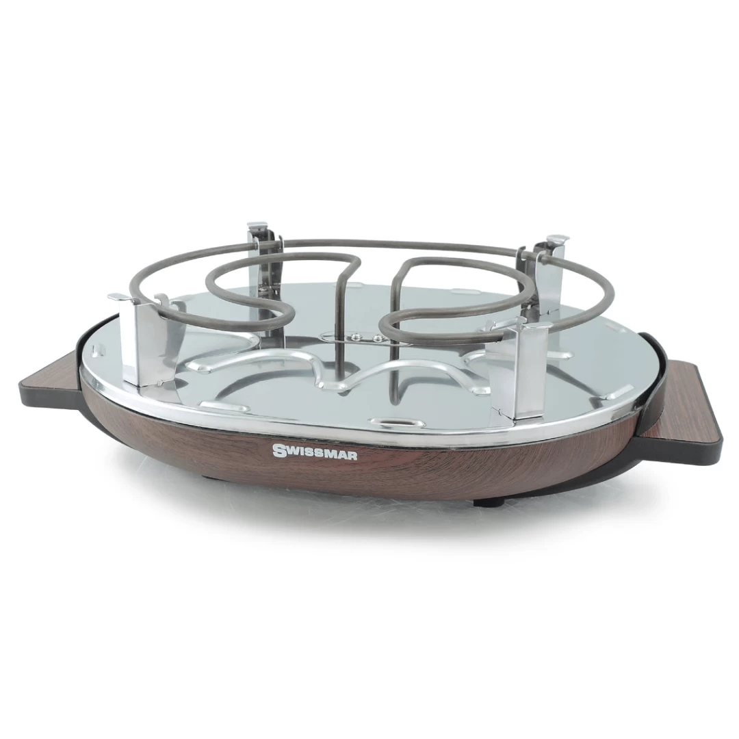 L’ensemble à raclette Matterhorn possède un design élégant et unique qui le distingue nettement de la plupart des poêles à raclette, qui sont d’ordinaire dotés d’une forme plus conventionnelle, notamment ronde ou carrée, et composés de matériaux plus sobres, souvent noirs ou bien au fini métallique.