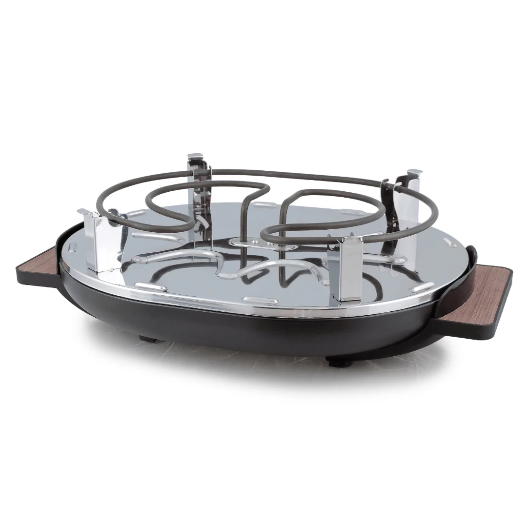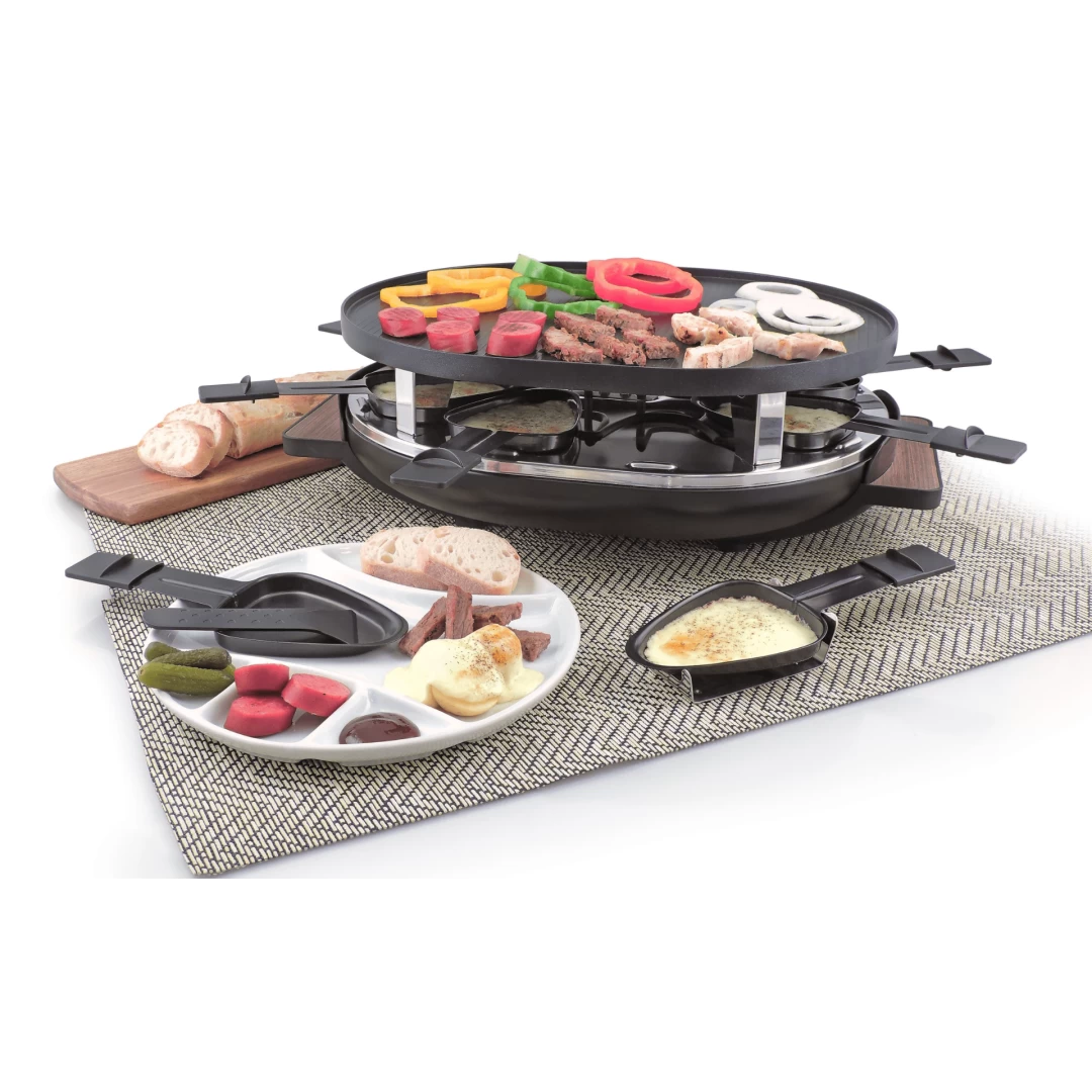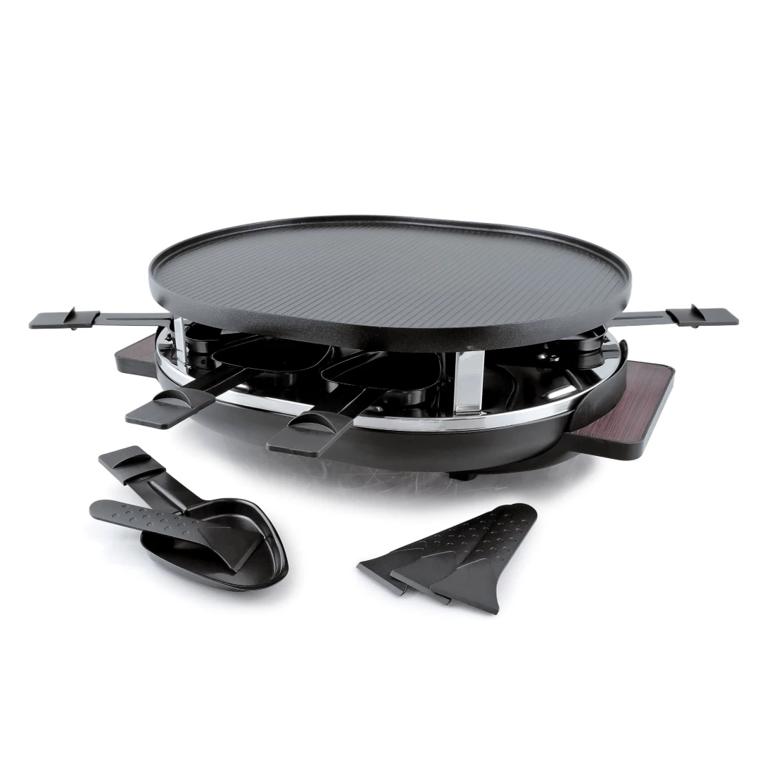L’ensemble à raclette Matterhorn possède un design élégant et unique qui le distingue nettement de la plupart des poêles à raclette, qui sont d’ordinaire dotés d’une forme plus conventionnelle, notamment ronde ou carrée, et composés de matériaux plus sobres, souvent noirs ou bien au fini métallique.