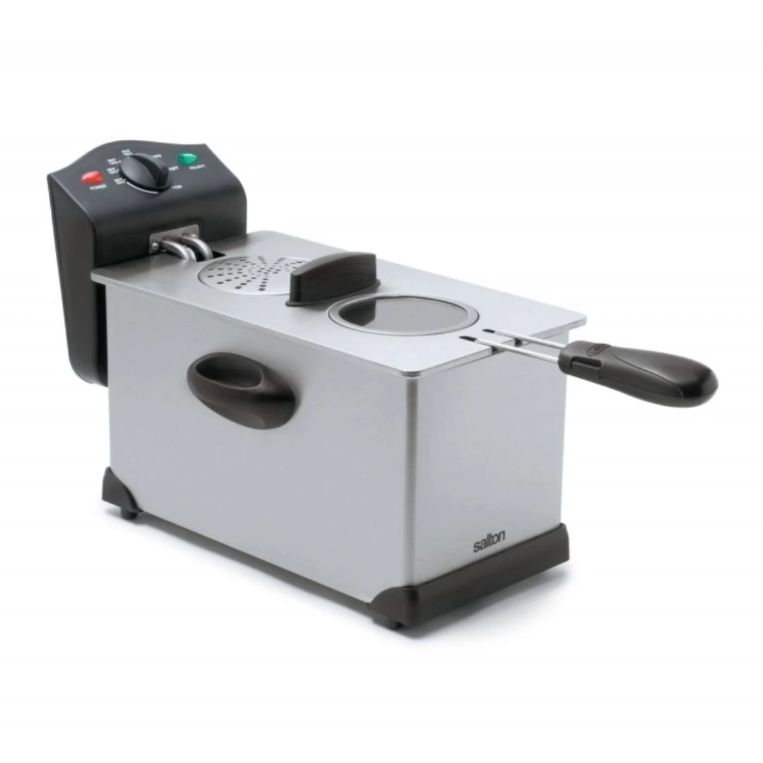 - Commande de la température ajustable et voyant lumineux indiquant que la friteuse a atteint la température idéale de cuisson.