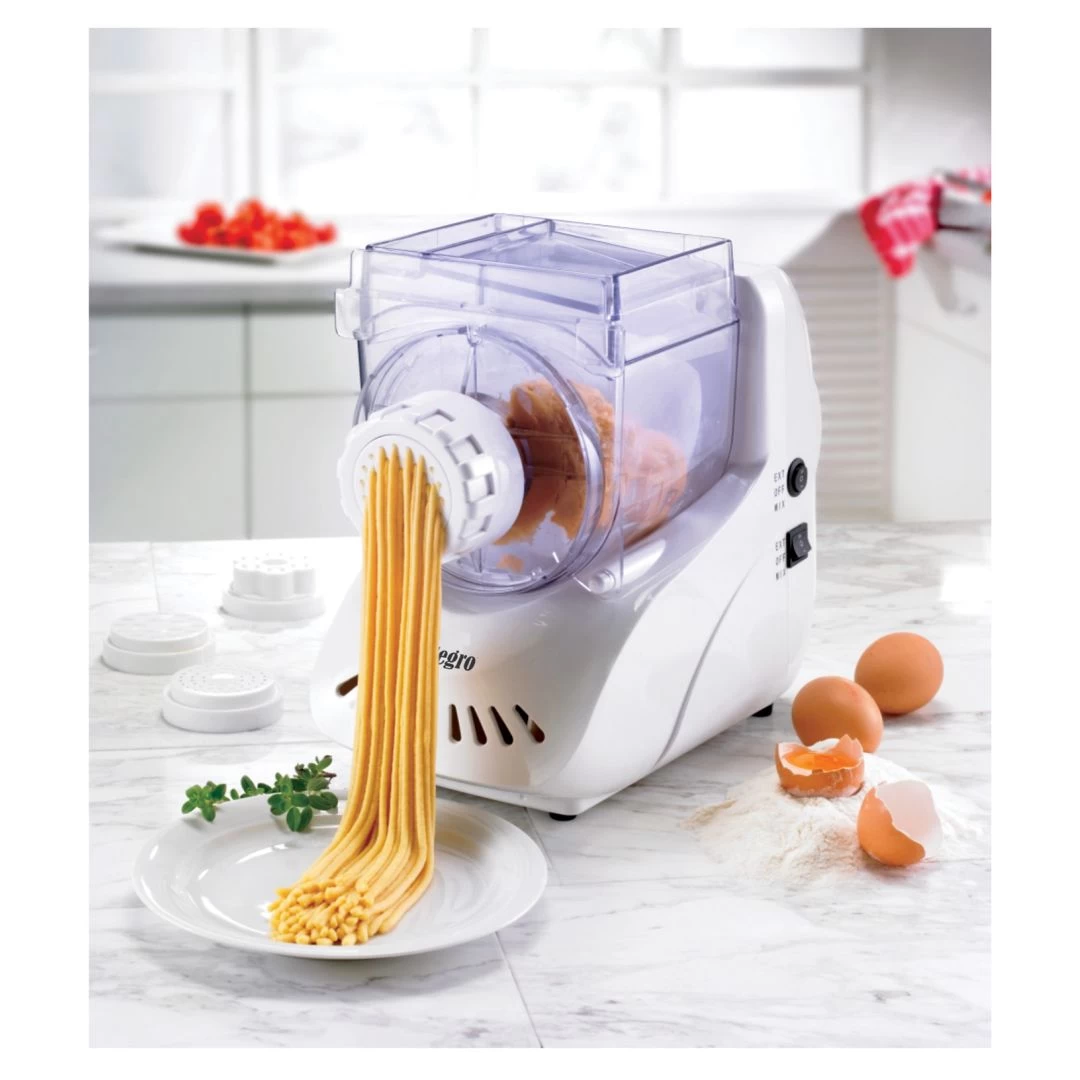 Pour ceux et celles qui désirent faire des pâtes fraîches maison, la machine à pâtes électrique Allegro de Strauss saura vous plaire. Avec ses sept embouts, vous pouvez faire des rigatonis, des spaghettis, des pappardelles, des linguines, des vermicelles, des gnocchis et des lasagnes. Vous pouvez même faire de la saucisse. Cette machine à pâtes est idéale pour ceux et celles qui veulent un appareil complet et facile à utiliser.