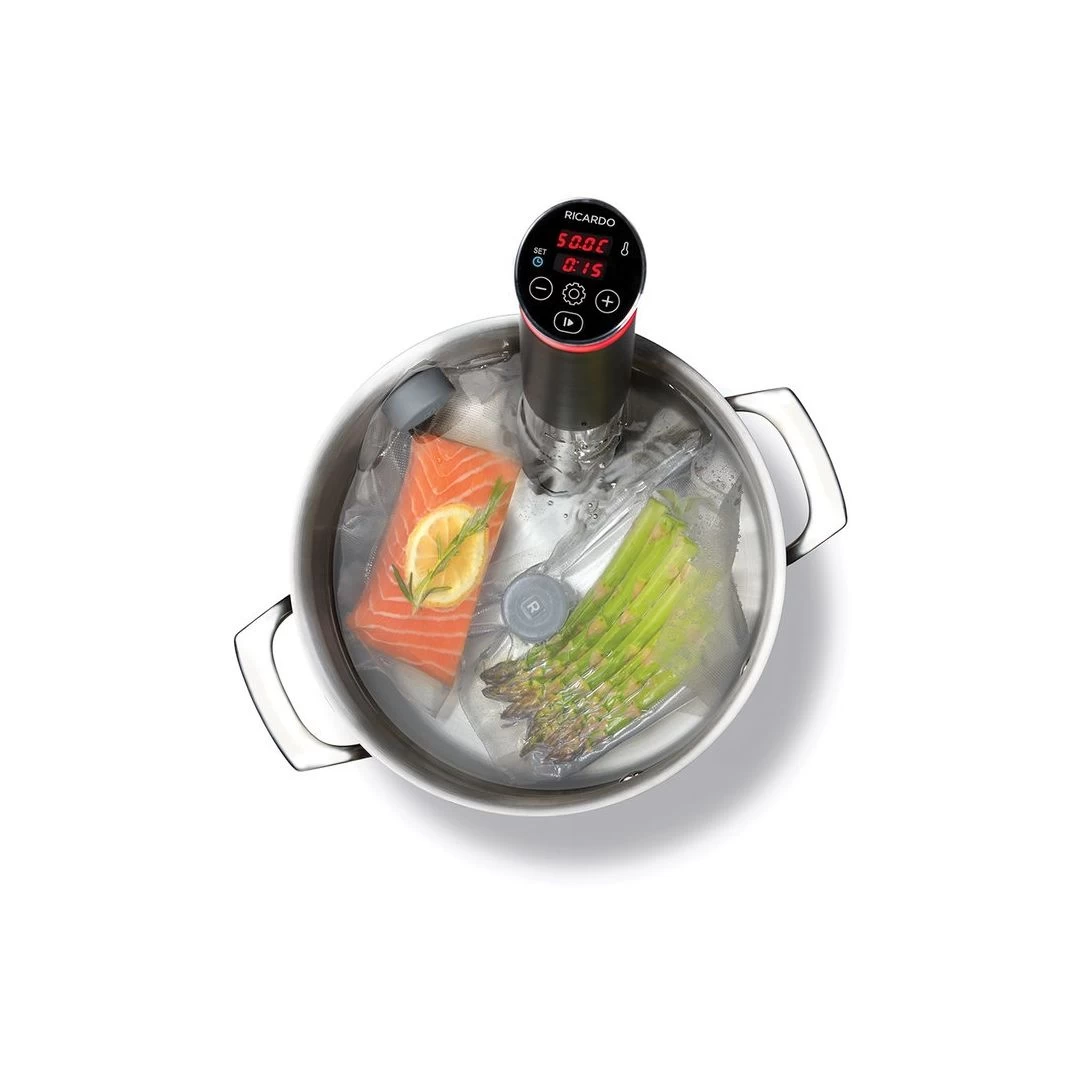 La cuisson sous vide consiste en la cuisson d’aliments contenus dans un sac en plastique conçu à cet effet submergé dans l’eau. Comme le plastique et ses dérivés flottent sur l’eau, il faut qu’un élément suffisamment lourd puisse maintenant le sac dans l’eau. C’est pour régler ce problème que ces poids aimantés ont été créés par Ricardo.