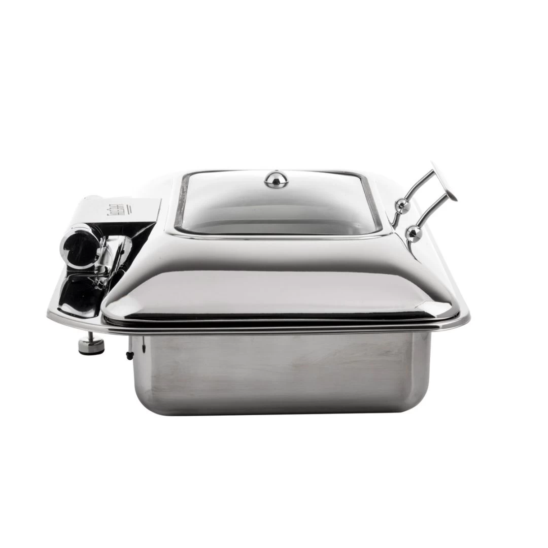 Ce réchaud à induction élèvera toute ligne de restauration ou de buffet. La fenêtre permet aux clients de voir le contenu et les évents de vapeur réduisent la condensation. Le couvercle se ferme lentement, ce qui réduit le bruit. Le couvercle comprend également des fonctions de sécurité permettant aux opérateurs de retirer et de remplacer facilement les bacs.