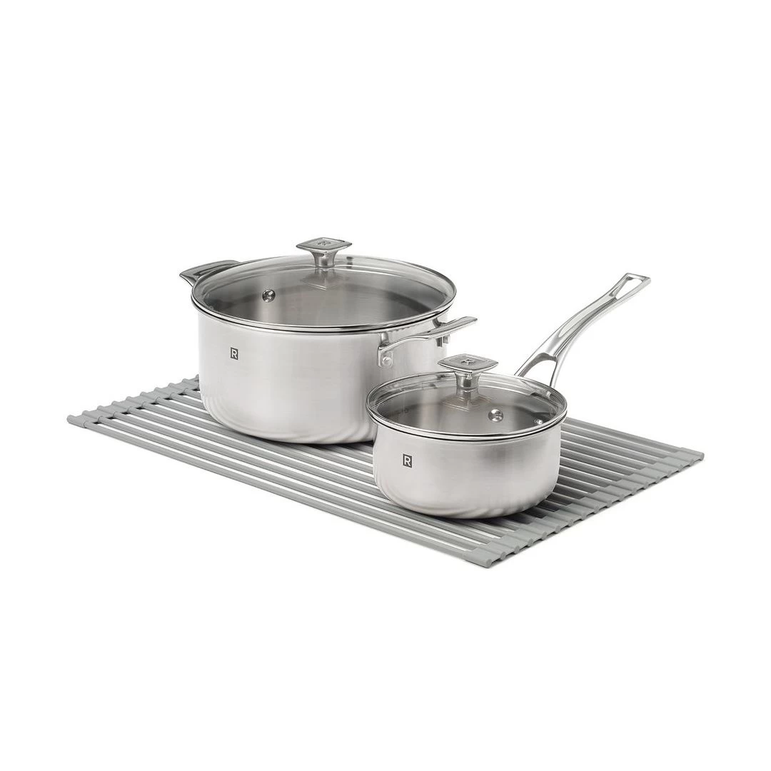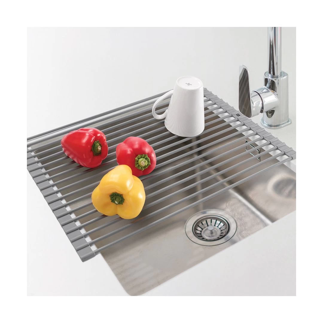 Ce support multifonction pratique et polyvalent peut être utilisé au-dessus d’un évier comme passoire ou égouttoir, comme grille pour le four ou comme sous-plat sur le comptoir. Ce support résistant, antidérapant et durable est doté de tiges avec revêtement en silicone. Facile à ranger et à nettoyer, ce support nécessitant peu d’entretien est un accessoire pratique pour toute cuisine.