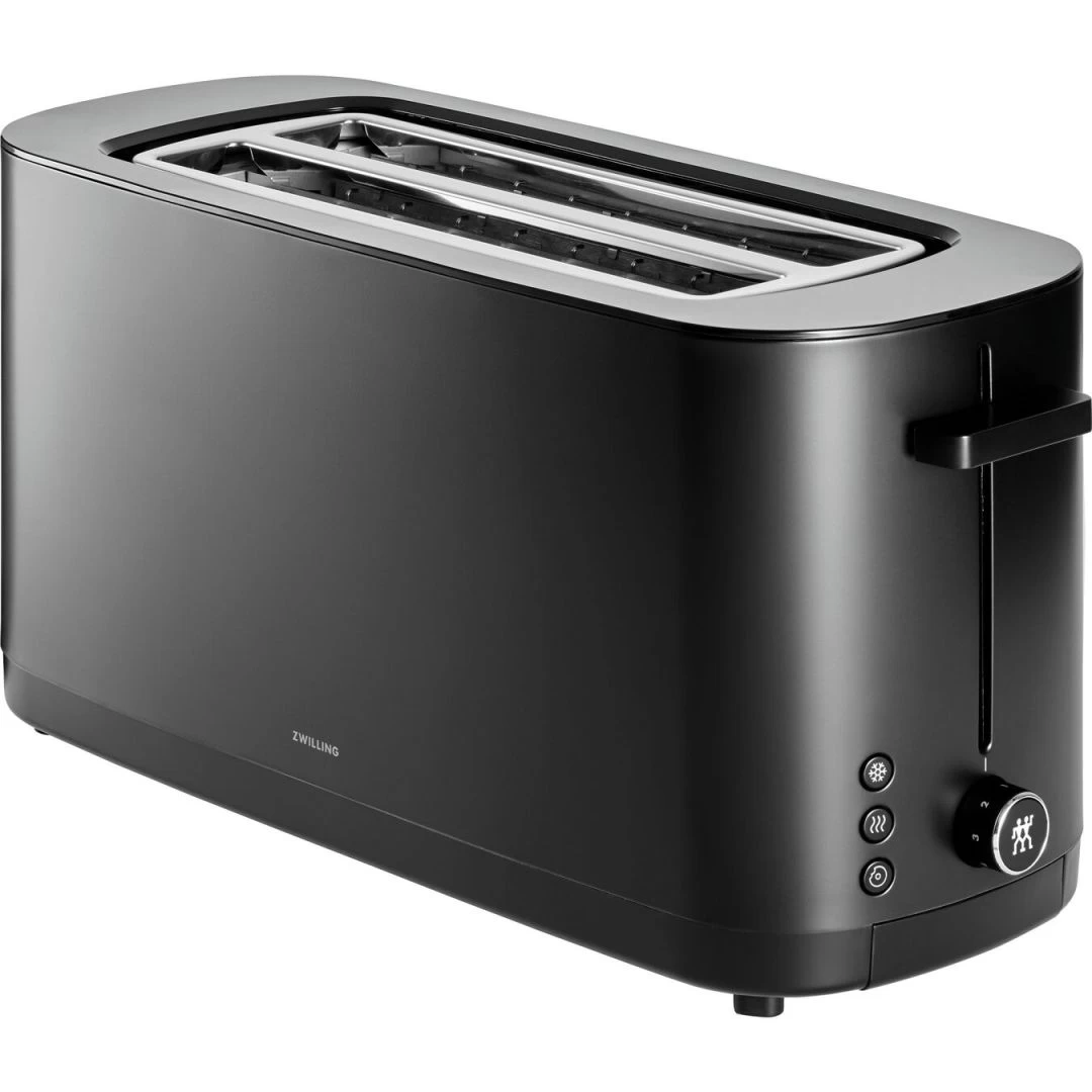 Les appareils de la collection Enfinigy de Zwilling sont caractérisés par le raffinement et la simplicité du boîtier et des différents boutons et leviers. Ce grille-pain a quant à lui été conçu pour le grillage efficace et uniforme des tranches de pain et des bagels insérés dans ses fentes. Son utilisation régulière est assurée sécuritaire et facile.